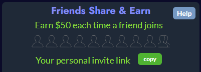 The Friends Share & Earn program rewards you for inviting new members to Diamond Pigs. When a friend signs up using your unique invite link and connects at least $200 in managed assets, you receive a $50 Store Credit.